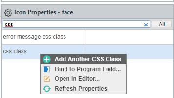 CSS classes can be specified on any widget by modifying the "css class" property. To add more than one CSS class, right-click the property and select Add Another.
