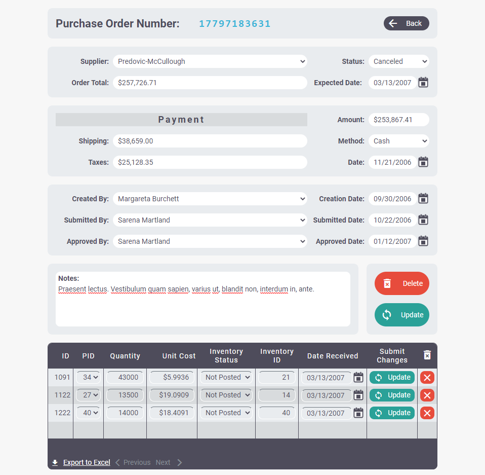 This is an example application to demonstrate an implementation of a Purchase Order (PO) System.