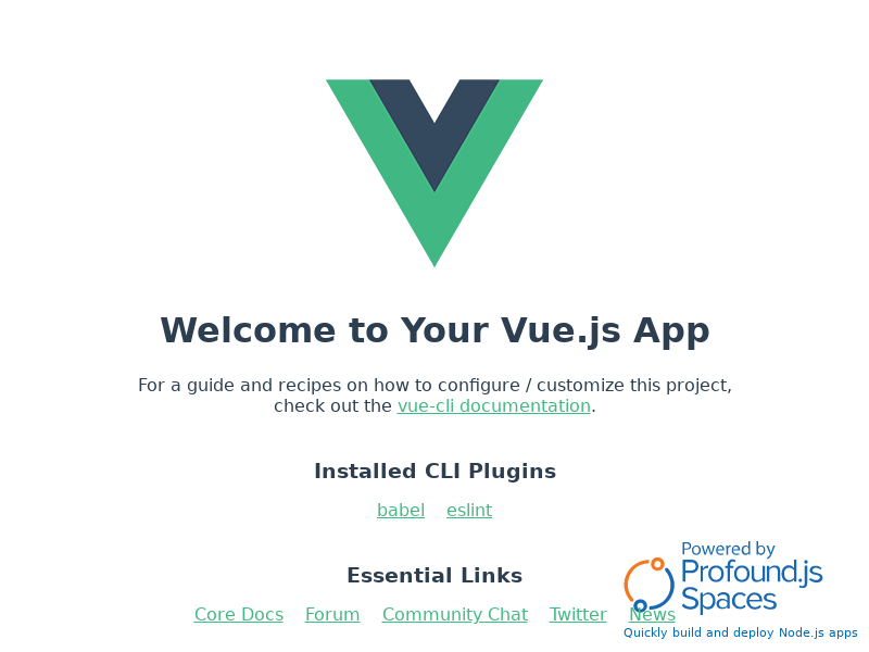 This template demonstrates the standard setup for building a Vue.js application on Profound.js Spaces.