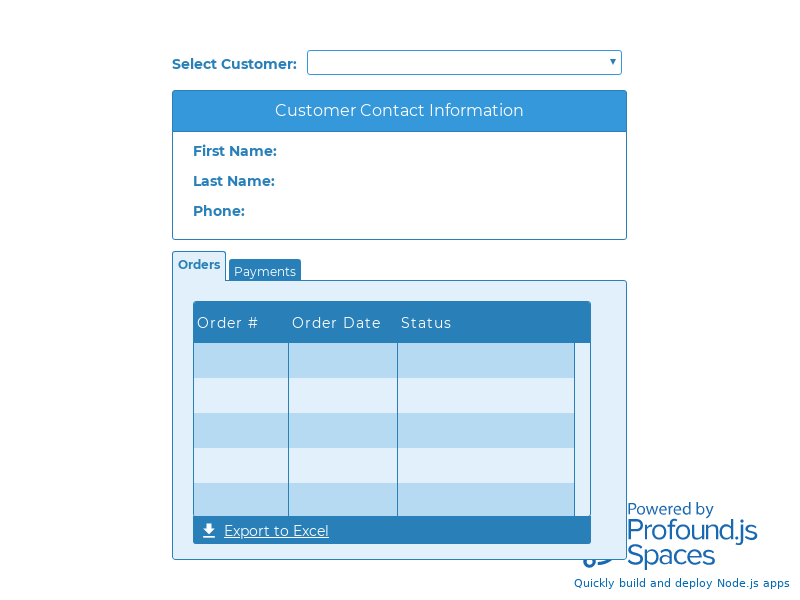 This template utilizes a database-driven widget. The customer dropdown is loaded dynamically by setting Database-Driven Selection properties.