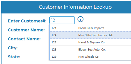 numbers, along with the corresponding customer names. The user simply starts typing into the box