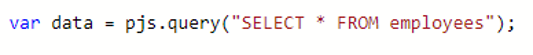 - The pjs.query() API executes an SQL query and returns a JavaScript array of records